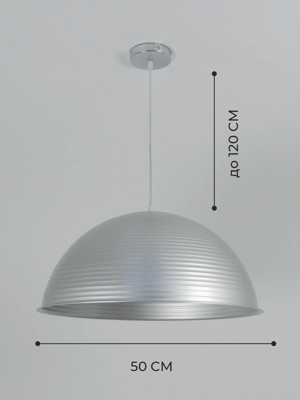Светильник подвесной SPF-6123 СЕРЕБРО+СЕРЕБРО ` D500/H1250/1/E27/40W без ламп, прозрачный провод SPF